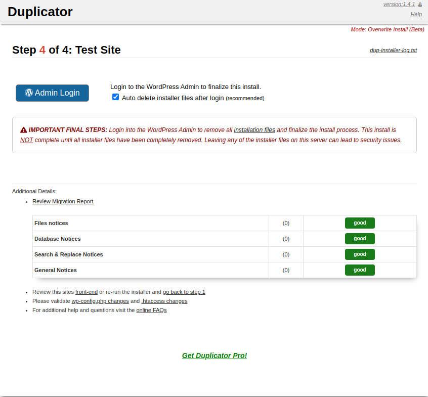 Якщо ми виконали всі кроки правильно, ми побачимо екран із підтвердженням встановлення. Це також дозволяє перевірити, чи він працює належним чином, і видалити файли встановлення.
