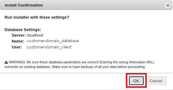 У полі «User» (3) введіть ім’я користувача, присвоєного базі даних (приклад: customer-domain_client).