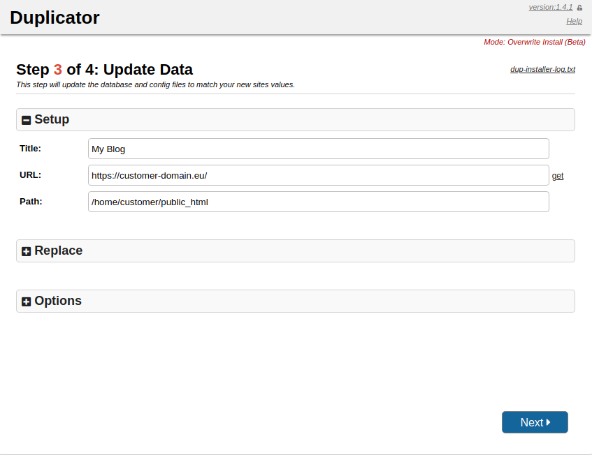 Після успішного розміщення файлів на сервері введіть адресу нашого веб-сайту у веб-браузері, додавши в кінці «installer.php» (приклад: www.customer-domain.eu/installer.php).